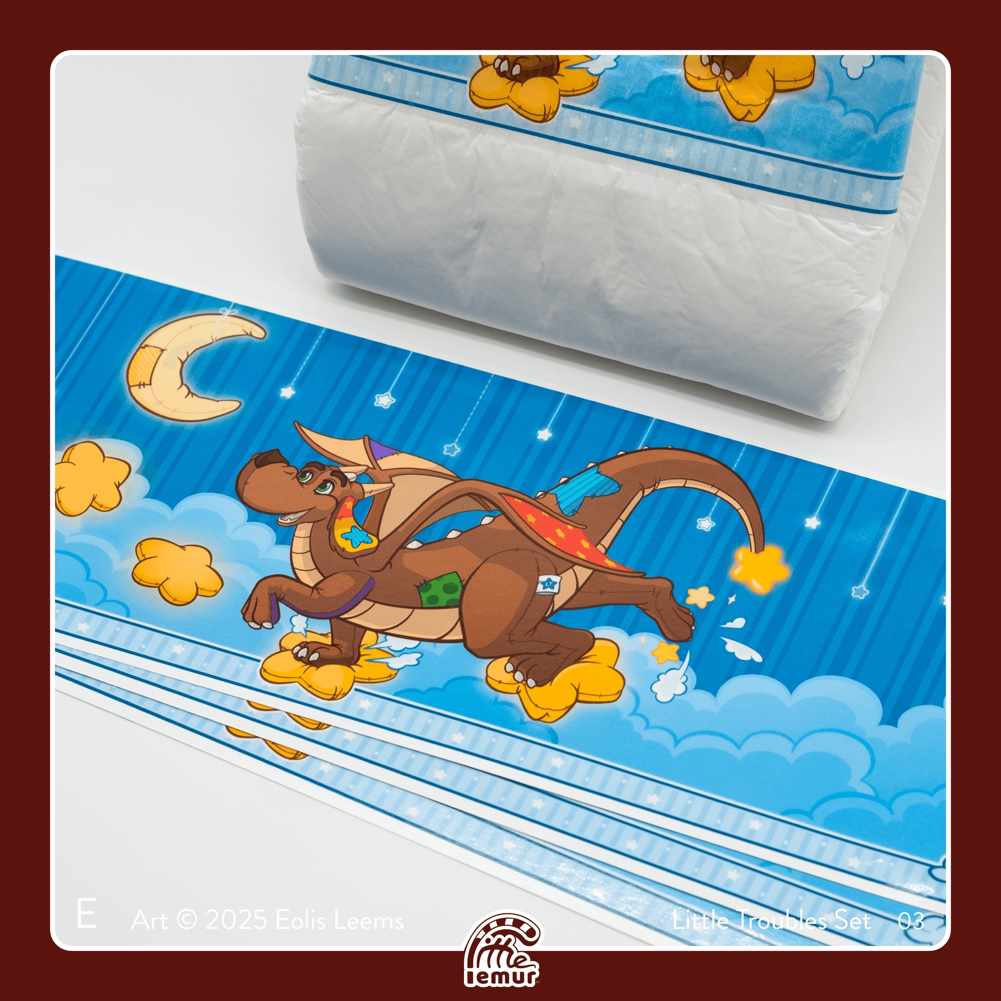 It's everyones plushy pal, Patches! Now available in diaper panel form! Get ready to add some mischief to your playtime through this collaborative project with Little Troubles & their adorable, and somewhat magical, plushy pal Patches! Explore the themes of Little Troubles card sets through these fun scenes featuring Patches on the many adventures they've taken, & been taken on!